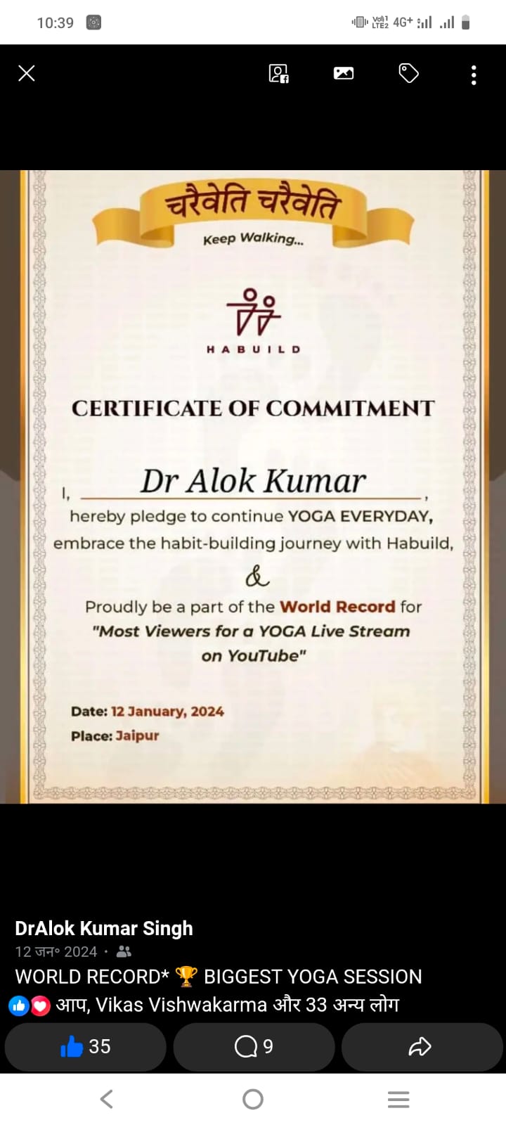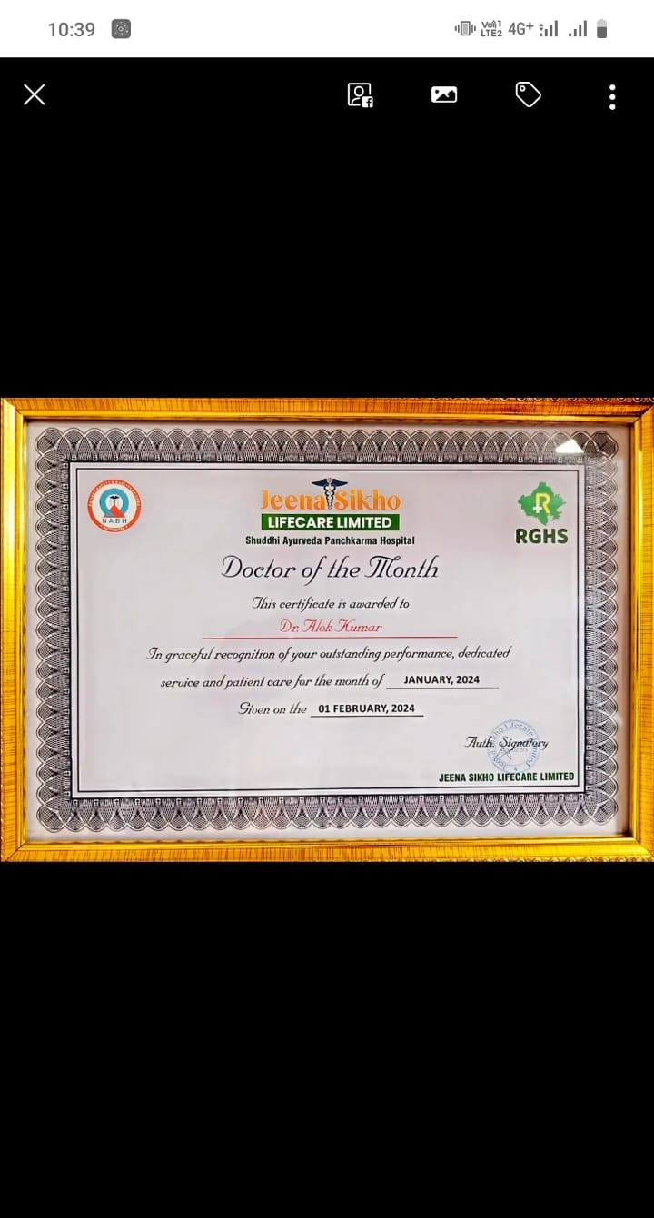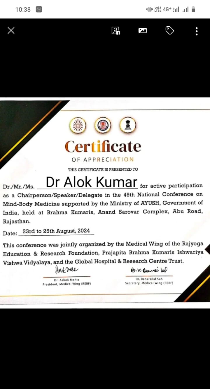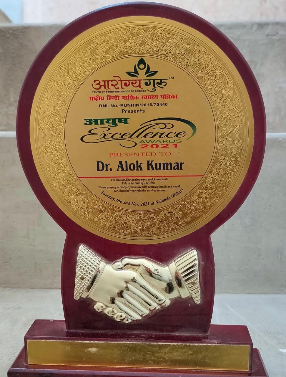 Honored with Chikitsa Ratna Award 2021 and recognized as State Vice President of JAP Medical Cell Bihar.